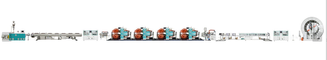 สายการอัดรีดท่อเทอร์โมพลาสติกเสริมแรง (RTP)ประกอบด้วยสามส่วน ส่วนแรกคือหน่วยอุปกรณ์การอัดขึ้นรูปท่อพลาสติกด้านใน ส่วนที่สองคือหน่วยอุปกรณ์ขดลวดเสริมลวดที่ไม่ใช่โลหะชั้นกลาง ส่วนที่สามคือด้านนอกหน่วยอุปกรณ์การอัดรีดการเคลือบ HDPE. มีข้อดีคือมีประสิทธิภาพสูง ความเร็วสูง ระบบอัตโนมัติสูง และประหยัดพลังงาน เป็นอุปกรณ์ที่เหมาะสำหรับการผลิตท่อคอมโพสิต RTP